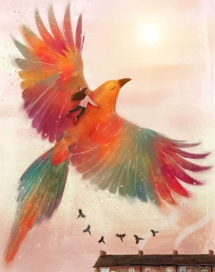 If you like me are primarily visual, take flight on a glorious bird and drop it into a giant earth hole to be transformed or throw it into the stars to be shined upon and transmuted.