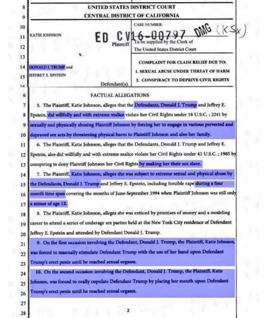 “Defendant Trump tied Plaintiff to a bed, exposed himself to Plaintiff, and then proceeded to forcibly rape Plaintiff.”